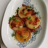 焼いた新玉ねぎの甘みがじっくりと味わえる、ガリバタ風味のステーキです。刻んでソースに入れたベーコンの風味がとてもよいアクセントになりますよ。しっかりと味付けをしているので、ごはんのおかずにはもちろん、お酒のおつまみにもおすすめです。ソースにポン酢を使用することで、さっぱりと仕上げていますよ。