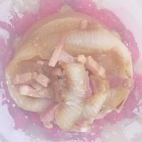 - 2 薄切りハーフベーコンはみじん切りにします。