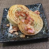「ベーコンソースで新玉ねぎガーリックステーキ」の作り方を簡単で分かりやすいレシピ動画で紹介しています。