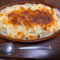 ホクホクのじゃがいもとキノコの食感が見事にマッチした和風グラタン。醤油と和風だしで仕上げた優しい味わいのソースは、キノコの旨味としっかり調和します。じゃがいもをレンジで加熱している間にソースを作れるので、時短で簡単。きのこは冷凍したものを使うとより美味しくなります。玉ねぎやベーコン、パン粉をのせてアレンジするのもおすすめです。