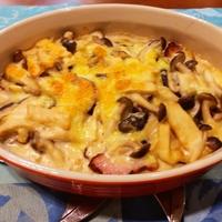 しいたけとしめじを使った、和風ポテトグラタンのご紹介です。きのこの和風ホワイトソースが、じゃがいもとの相性ぴったりな一品です。お好みで鶏肉などを加えても、おいしくお作りいただけます。ぜひ作ってみてくださいね。