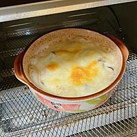 - 7 耐熱皿に2、6、ピザ用チーズの順にのせ、200℃のオーブンでチーズに焼き色がつくまで15分焼きます。