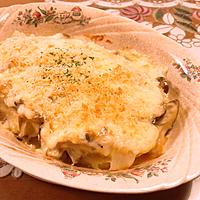 アレンジでホワイトソースの中に玉ねぎも加え、チーズの上にパン粉もかけました。