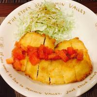 鶏むね肉1枚でボリュームおかずが完成!薄くのばして揚げ焼きにする、わらじサイズのビッグチキンカツです。サクサクカリカリの食感は大人も子どもも大満足のおいしさです。梅を隠し味に加えた、さっぱり風味の和風トマトソースをかけてお召し上がりください。