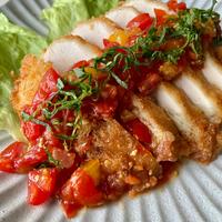 ソースがまた絶品でした。トマトと梅干しがこんなに合うとは!梅干し嫌いの夫も何故か大絶賛でした。