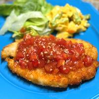 味見の段階でトマトソースが若干物足りない味に感じたので、ハーブソルトをプラス。梅も少し小さかったせいか、梅感がなかったので、梅肉もプラス。お陰で、スゴく美味しくなりました。旦那様からも好評頂きました。薄く伸ばして、大きくした分、満腹感も感じるし、胸肉で安く経済的だし、またリピしまぁす!