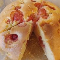 丸形で焼きました。焼き時間30分で大丈夫でした。 イチゴが少し酸っぱかったですが、美味しくできました‼️