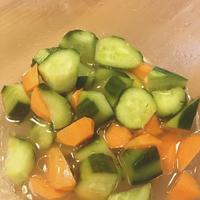きゅうり、にんじん、コーンで作りました。味つけがとても好みだったのでパクパク食べちゃいました(*´Д`)リピします♪
