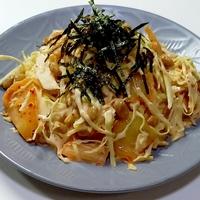 - 3 1に2とキャベツ、キムチを入れて混ぜます。