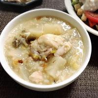 炊飯器に材料を入れてスイッチを押すだけで、手羽元がホロホロに柔らかく、大根がとろとろに仕上がります。鶏の旨味と生姜の香りが効いた優しい味付けで、体も温まる一品。大根は味がよく染み込み、スープまで美味しくいただけます。しめじや人参を加えたり、もち米を入れてとろみのある仕上がりにしたりとアレンジも自在。寒い日にぴったりの簡単レシピです。