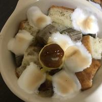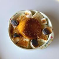 食パンを利用した、簡単おやつを作りました。マシュマロをプリンアラモードの生クリームに見立てて、とろーり食感に! プリンと食パンも絡まり濃厚なカスタードへ。贅沢な1品に仕上がりました。是非、お試しください。