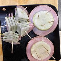 - 2 大根は皮付きのまま3〜4mmの厚さの薄切りにします。