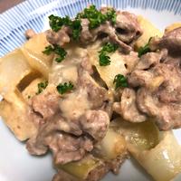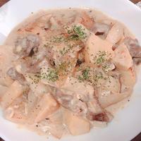 たけのこのシャキシャキ食感が楽しい、クリーム煮込みのご紹介です。味の決め手は、クリームチーズと味噌。この2つを加えることで、濃厚でコクのある味わいに仕上がります。牛肉の旨みが溶け出した、クリーミーな一皿をぜひお試しください。