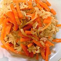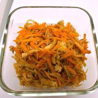 - 1 ボウルに切り干し大根、水を入れてパッケージの表記通りに戻し、水気を絞ります。