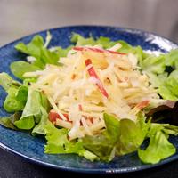 大根とリンゴの食感が楽しいさっぱりとしたマリネはいかがでしょうか。意外な組み合わせかと思いますが、さっぱりとしたマリネとリンゴのほんのりとした甘みは相性抜群です。暑い季節でもさっぱりと召し上がっていただける一品です。