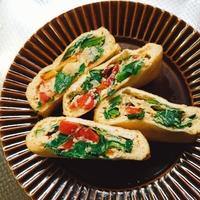 レンジで簡単に作れる、油揚げの卵巾着はいかがですか。色とりどりの具材と卵を混ぜて、油揚げに流し込んだら、あとは電子レンジで加熱するだけなので、とても簡単に作ることが出来ますよ。冷蔵庫に油揚げが余った時など、ぜひお試しください。