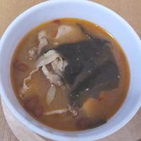 キムチを入れなかったので、味噌を多め、ダシ、唐辛子も入れました☆豚肉ワカメ豆腐でしました☆美味しかったです☆