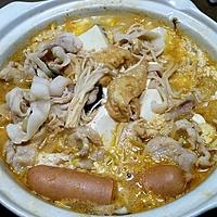 鶏肉のかわりに豚肩ロース、椎茸のほかにえのきとエリンギ足して、ニラ無しでフランクソーセージや油揚げ長ねぎ足しました。おいしかったです。