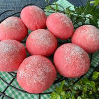 ・ベンチタイムと二次発酵の際は、生地の表面が乾燥しないように必ず濡れ布巾をかけてください。 ・手順7では、チョコレートが漏れないように生地をしっかりと閉じてください。 ・イチゴパウダーが用意できない場合は、市販のドライストロベリーを細かく刻んだものや食紅で代用してください。食紅をご使用の場合は、色味が変わるだけで実際に生地にイチゴの風味はありません。 ・オーブンは必ず予熱を完了させてから焼いてください。 予熱機能のないオーブンの場合は温度を設定し10分加熱を行った後、焼き始めてください。 ご使用のオーブンの機種や使用年数等により、火力に誤差が生じる事があります。焼き時間は目安にし、必ず調整を行ってください。 焼き色が付きすぎてしまう場合は、アルミホイルをかけてください。