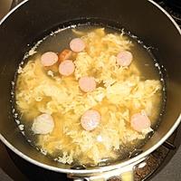 - 2 沸騰したら溶き卵を少しずつ入れ、弱火で加熱します。
