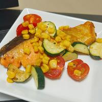 彩り野菜といただく、鮭のタンドリー風のご紹介です。シンプルに焼いた食感が楽しいジューシーな夏野菜に、脂ののった鮭を、ごはんやお酒によく合う味付けに仕上げました。食欲のそそる一品ですよ。ぜひ、お試しくださいね。