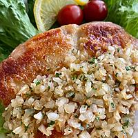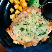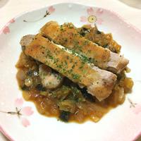 皮目に薄力粉をまぶして焼くことでパリパリ食感が楽しめる人気レシピです。ニンニクの香ばしい香りと玉ねぎの甘みが溶け合い、醤油ベースのソースがチキンと相性抜群。一味唐辛子のピリッとした辛みがアクセントになっています。玉ねぎは多めが好評で、ソースにハチミツやバターを加えるとコクが出ておすすめです。レストランの味を自宅で簡単に再現できると、家族やお客様にも大好評のメニューです。