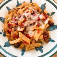 ペンネが余ったのと、粉チーズはピザ用チーズで代用、ベーコンの代わりにひき肉を使いましたが味がしっかり染みて美味しかったです!