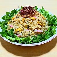 チャーシューも刻んで入れました、予めご飯を冷やしておくとパラパラになります🙆♀️✨