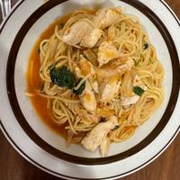 ワンパンで作れるピリッと辛いキムチスパゲティのご紹介です。フライパン一つで手軽にスパゲティが作れます。しっかりとした味付けなので、たんぱくな鶏ささみにも味が馴染み、とても美味しいです。大葉の香りがアクセントになっています。