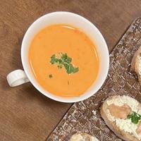 赤パプリカとにんじんの冷製ポタージュスープはいかがでしょうか。玉ねぎと米を加えて甘みを出し、コクのある味わいに仕上げました。赤パプリカとにんじんはじっくり火を通すことで甘みが増すので、スープにすると食べやすいですよ。ぜひお試しくださいね。