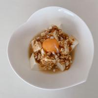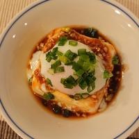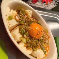 長ネギ入りの甘辛だれがさっぱりした豆腐を食べごたえのある一品に。生玉子が苦手なので、温泉玉子にして小ネギもかけました。もう少し辛めでも良いかな。豆板醤かラー油を入れても良いかも。簡単で美味しかったです🎵