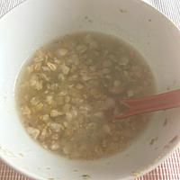 - 2 大きめの耐熱ボウルに(A)、水を入れてよく混ぜ合わせ、オートミールを入れて混ぜ合わせます。ラップをかけ、600Wの電子レンジで2分程加熱し、よく混ぜ合わせます。