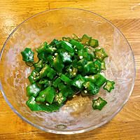 - 3 2の細かくしたオクラをボウルに入れ、白だし、しょうゆ、酢を加え混ぜます。