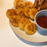 No.99 とても外側カリカリに出来ました😍途中でコンソメが足りなくなってしまったせいか、味が結構薄かったです😅でもケチャップにつけるととても美味しくめっちゃ食べてしまいました😂(7個ぐらい...w)なのでまた作りたいです✨
