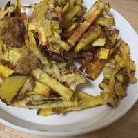 ほっくり甘いさつまいもとお肉をかき揚げにした、ボリューム満点なおかずです。しっかりと下味をつけたお肉をかき揚げにしているので、ご飯との相性も抜群です。さつもいもだけだとちょっと物足りないという方にも大満足な一品です。