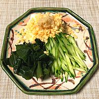 - 1 乾燥わかめを水でパッケージの表記通りに戻し、水気を切ります。