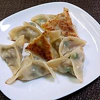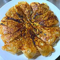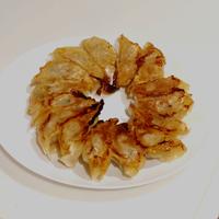 - 4 餃子の皮に3を1/14量ずつのせ、縁に水をつけて包みます。