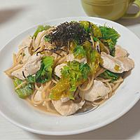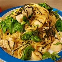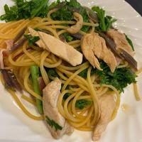 たっぷりわさび菜と鶏ささみのバター醤油パスタ レシピ・作り方