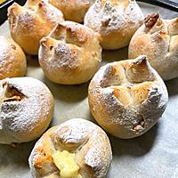 - 5 ラップ、濡れた布巾をかぶせてオーブンの発酵機能を使い40℃で10分程、オーブンから出し、室温で10分程発酵させます。(二次発酵)この間にオーブンを210℃に予熱します。