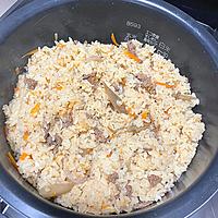 - 6 炊飯釜に、洗った米、先程炒めた具材を入れ混ぜ合わせます。