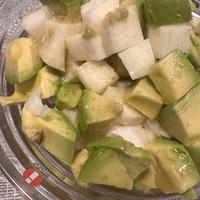 - 1 長芋とアボカドは2cm角の角切りにします。