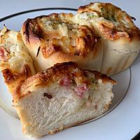 型がないので耐熱皿に入れて焼き上げました!焼き時間はパンに少し焼き色が欲しかったのでトータル25分焼いています。とっても美味しく大満足!こんなに具沢山なパンはお家ならではですね!また作ります!