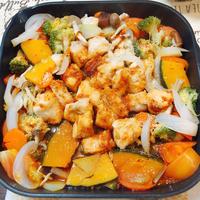何回もリピしてます!今回はかぼちゃ、キャベツ、ブロッコリー、舞茸、レンコン、トマトで!粉チーズかけないで味濃いめで作るのが好き!