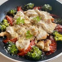 フライパンで材料を入れて蒸すだけの簡単調理なのに、鶏むね肉がしっとり柔らかく仕上がります。トマトの酸味と味噌の旨味が溶け合い、野菜の甘みが引き立つヘルシーな一品に。ブロッコリーやかぼちゃ、舞茸など好みの野菜を加えてアレンジも自在です。仕上げに粉チーズをかければ、まるでイタリアンレストランのような本格的な味わいに。お弁当のおかずとしても映える彩り豊かな料理です。