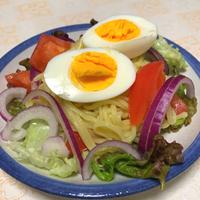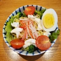 たっぷりの野菜がのった、ラーメンサラダのご紹介です。ゴマダレがマッチしてとてもおいしい一品ですよ。どなたでも簡単にお作りいただけますよ。小腹がすいたときにもぴったりの一品です。この機会にぜひ作ってみてくださいね。