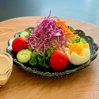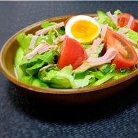 - 5 器にサニーレタス、1を盛り付け、4、2をのせます。3をかけて完成です。