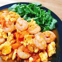 パクチー好きな方にはたまらない、エビと卵のふわふわチリソースのご紹介です。 トマトを入れることで、爽やかな酸味があり、彩りもとても鮮やかになります。 チリソースとパクチーの相性はピッタリなので、パクチーをたっぷりと乗せてお召し上がり下さいね。