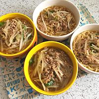 - 2 火をつけ中火で炒め、豚ひき肉の色が変わったら、もやしを入れます。