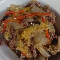 しいたけ、白菜、ニンジン、長ネギ、牛こま肉200gで作りました