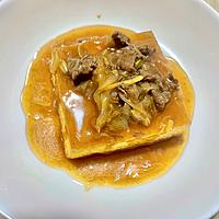 とろっとした牛肉のあんと、かりっと香ばしい厚揚げの一品です。今回は厚揚げにあんをかけましたが、もちろん豆腐にかけても美味しく召し上がって頂けます。お酒のおつまみにもぴったりですよ。簡単に出来るので是非お試しください。